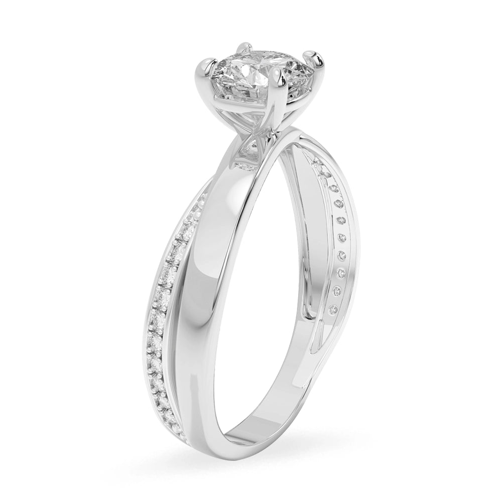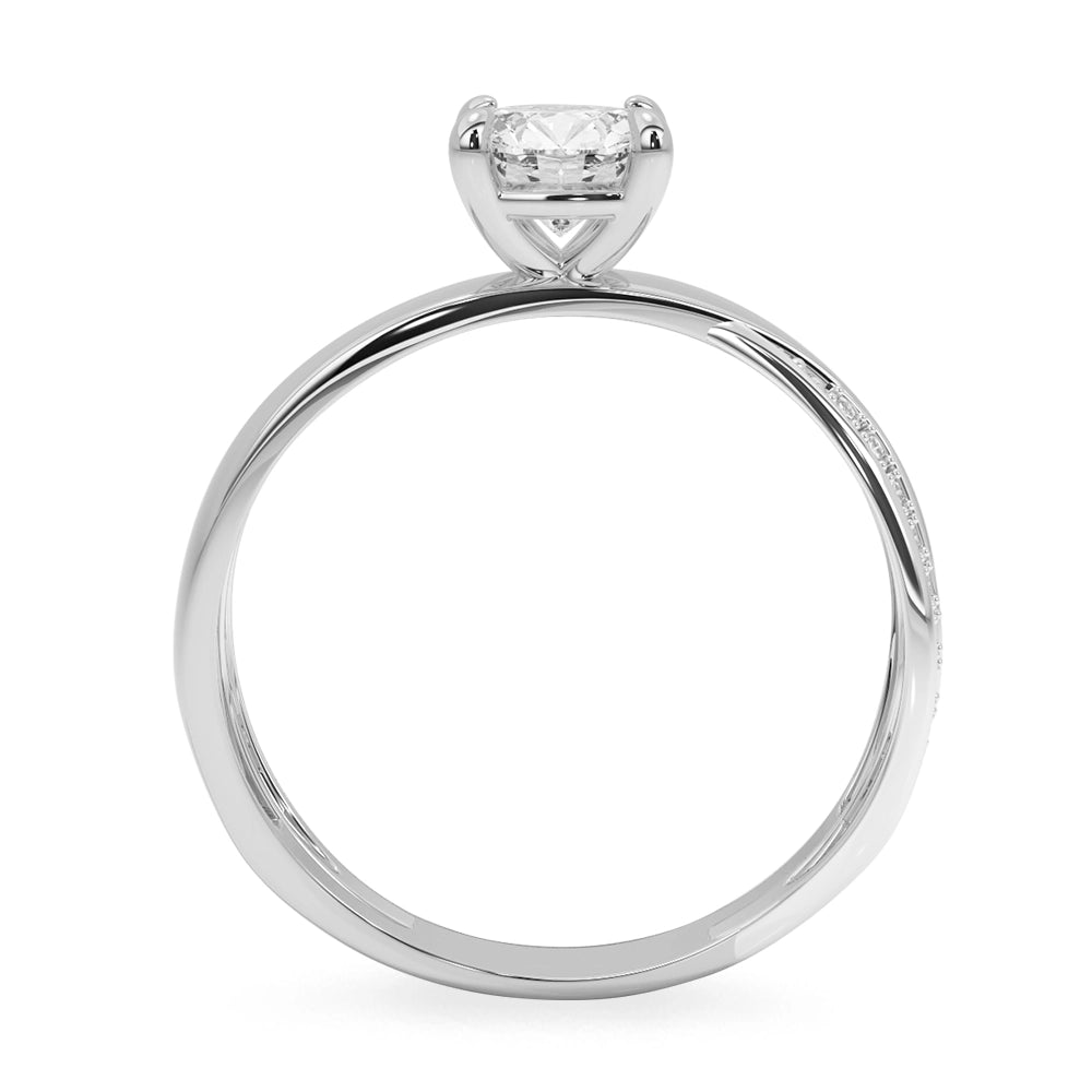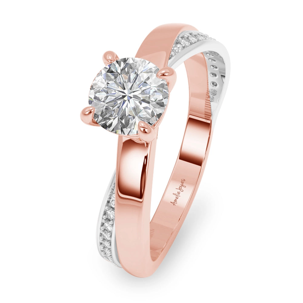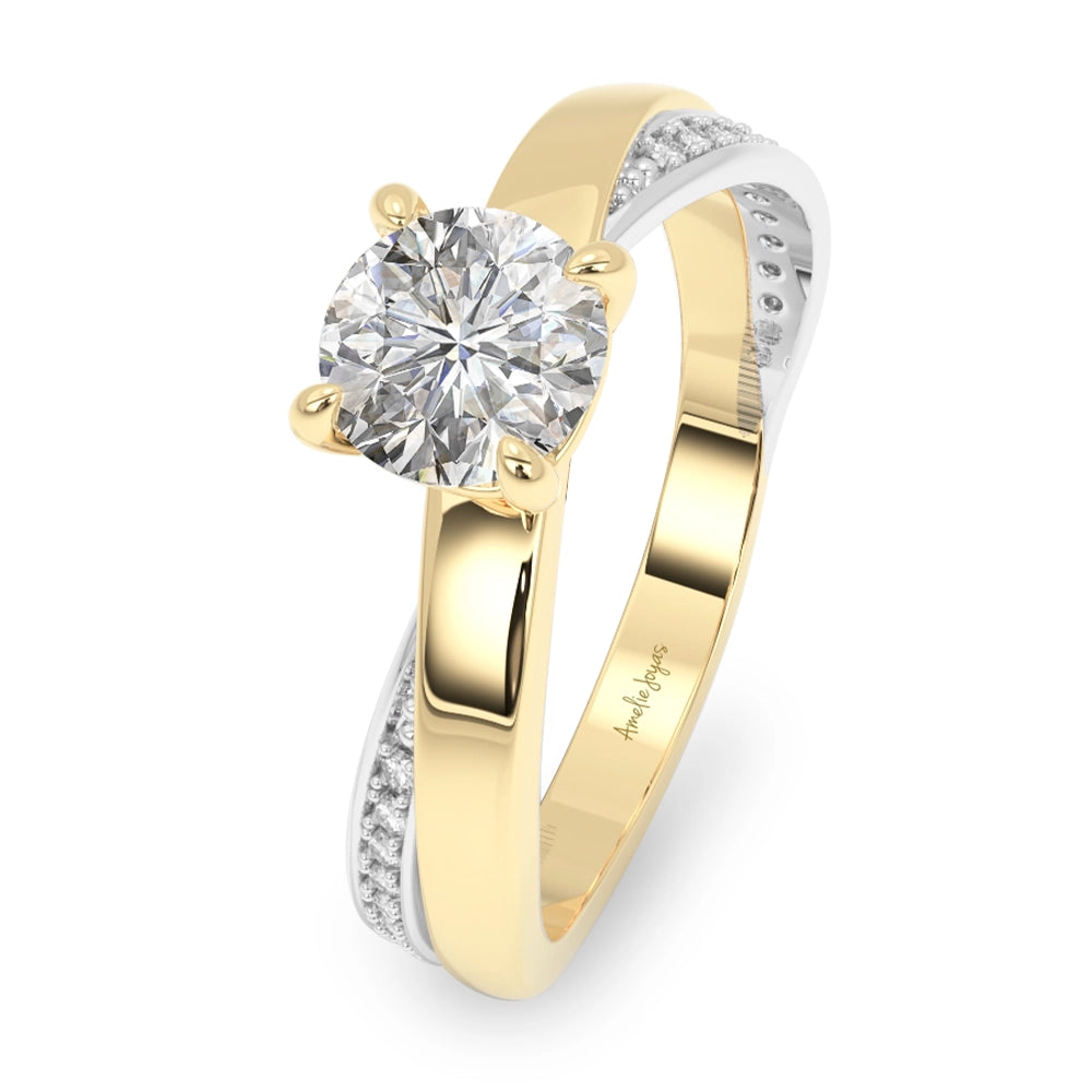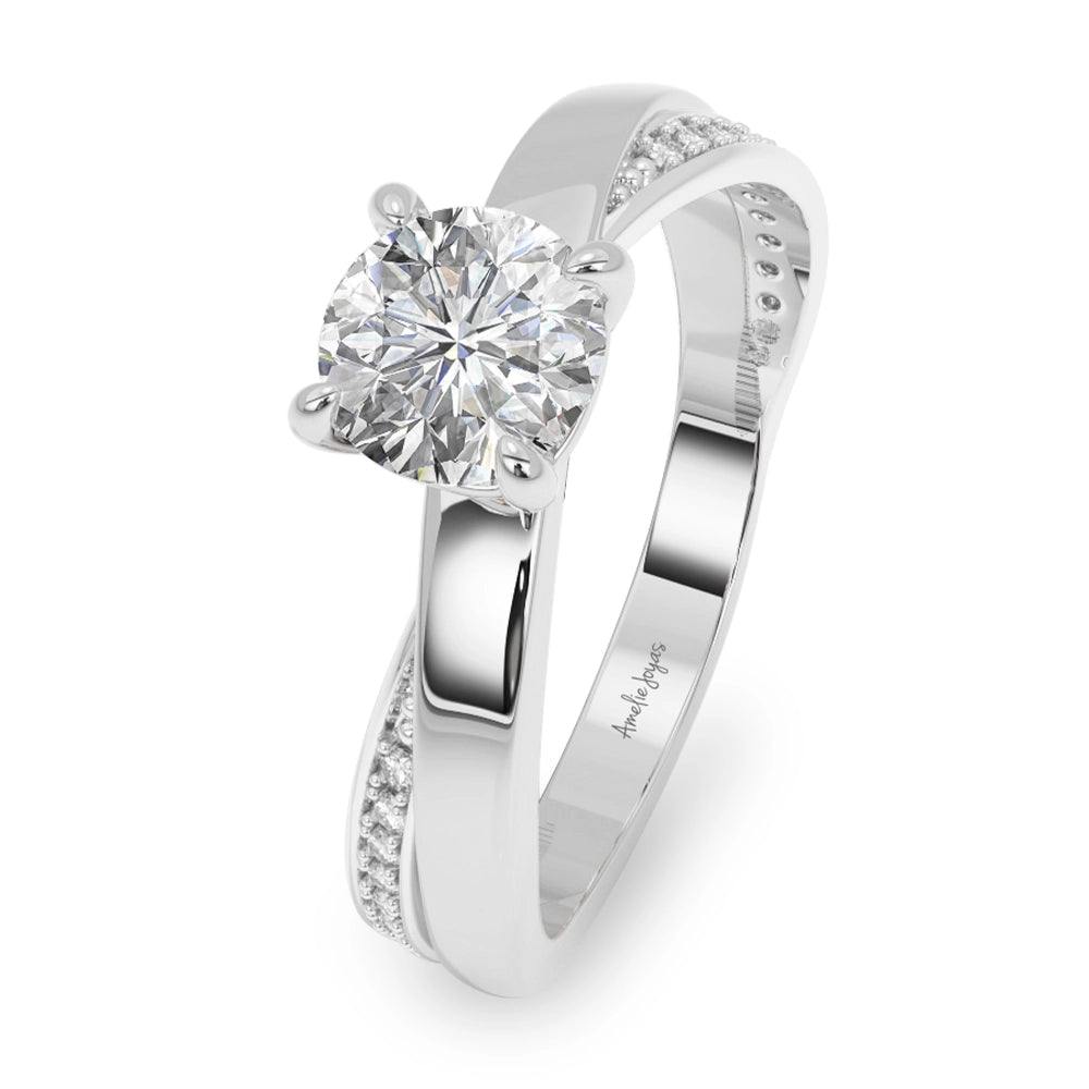 Anillo de compromiso de diseño central redondo, realzado con elegantes detalles en oro blanco y delicadas zirconias laterales que aportan un brillo sutil y refinado. Una joya sofisticada, creada para simbolizar un amor eterno con distinción.