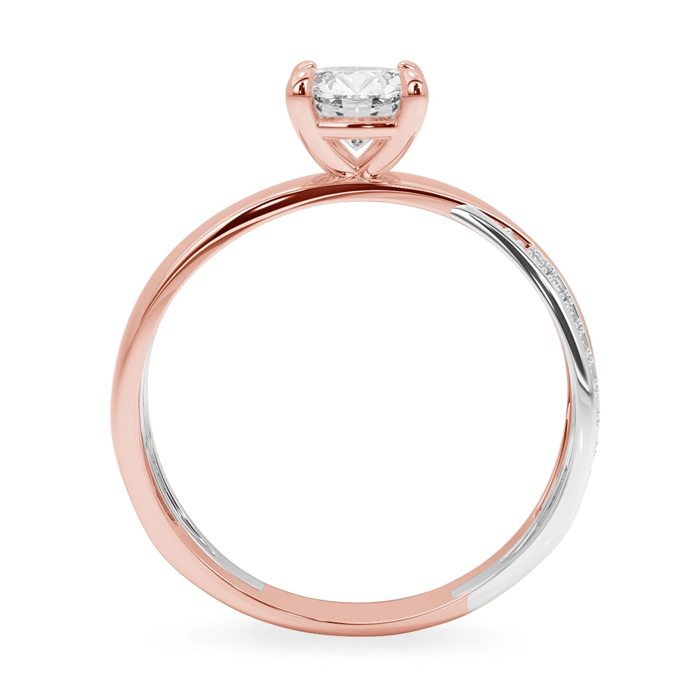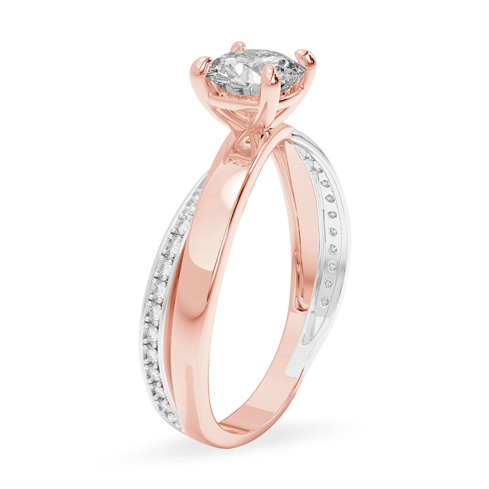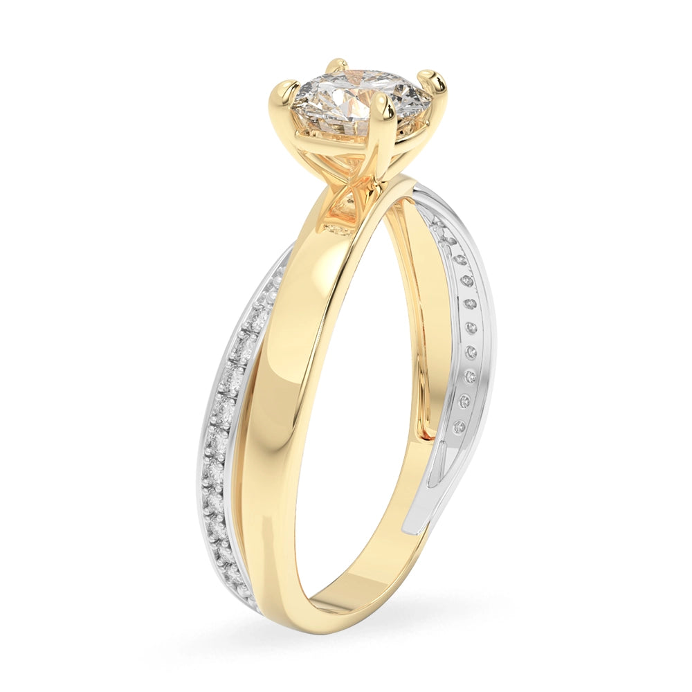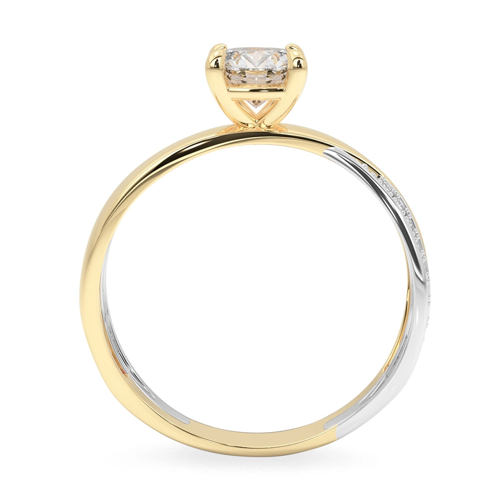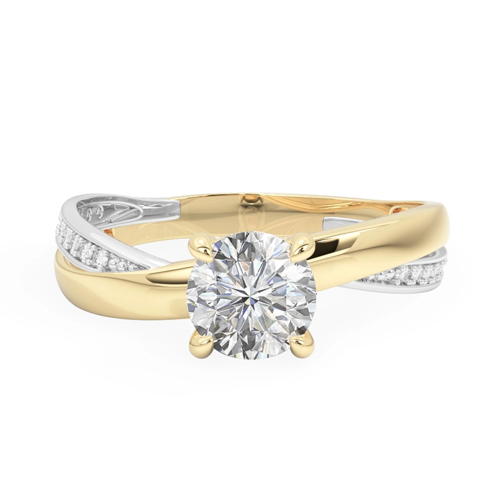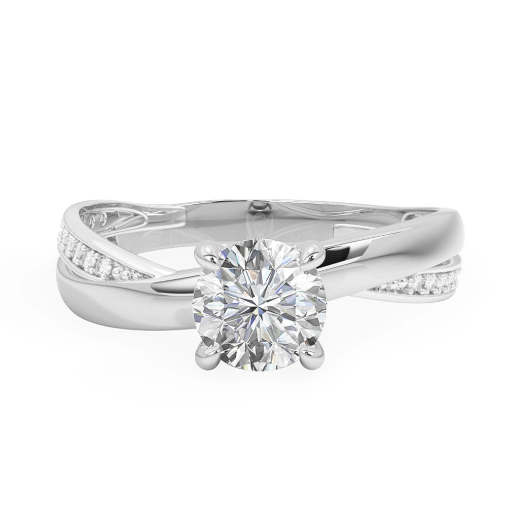Anillo de compromiso de diseño central redondo, realzado con elegantes detalles en oro blanco y delicadas zirconias laterales que aportan un brillo sutil y refinado. Una joya sofisticada, creada para simbolizar un amor eterno con distinción.