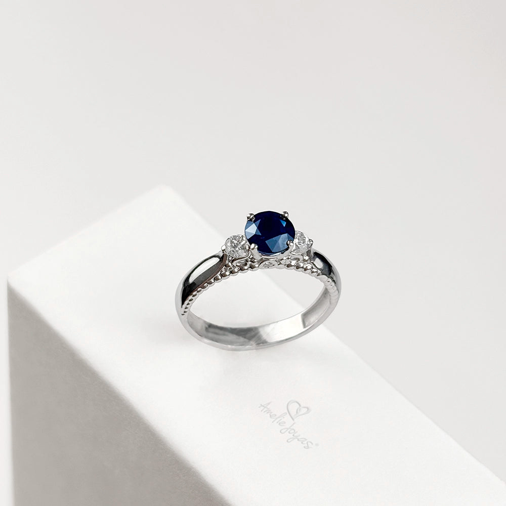 Zafiro Natural de 5.0 mm y circonias laterales.