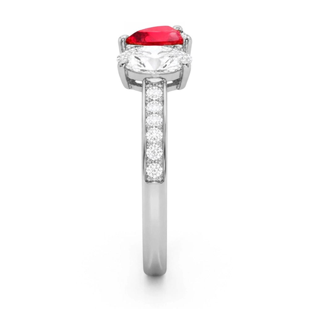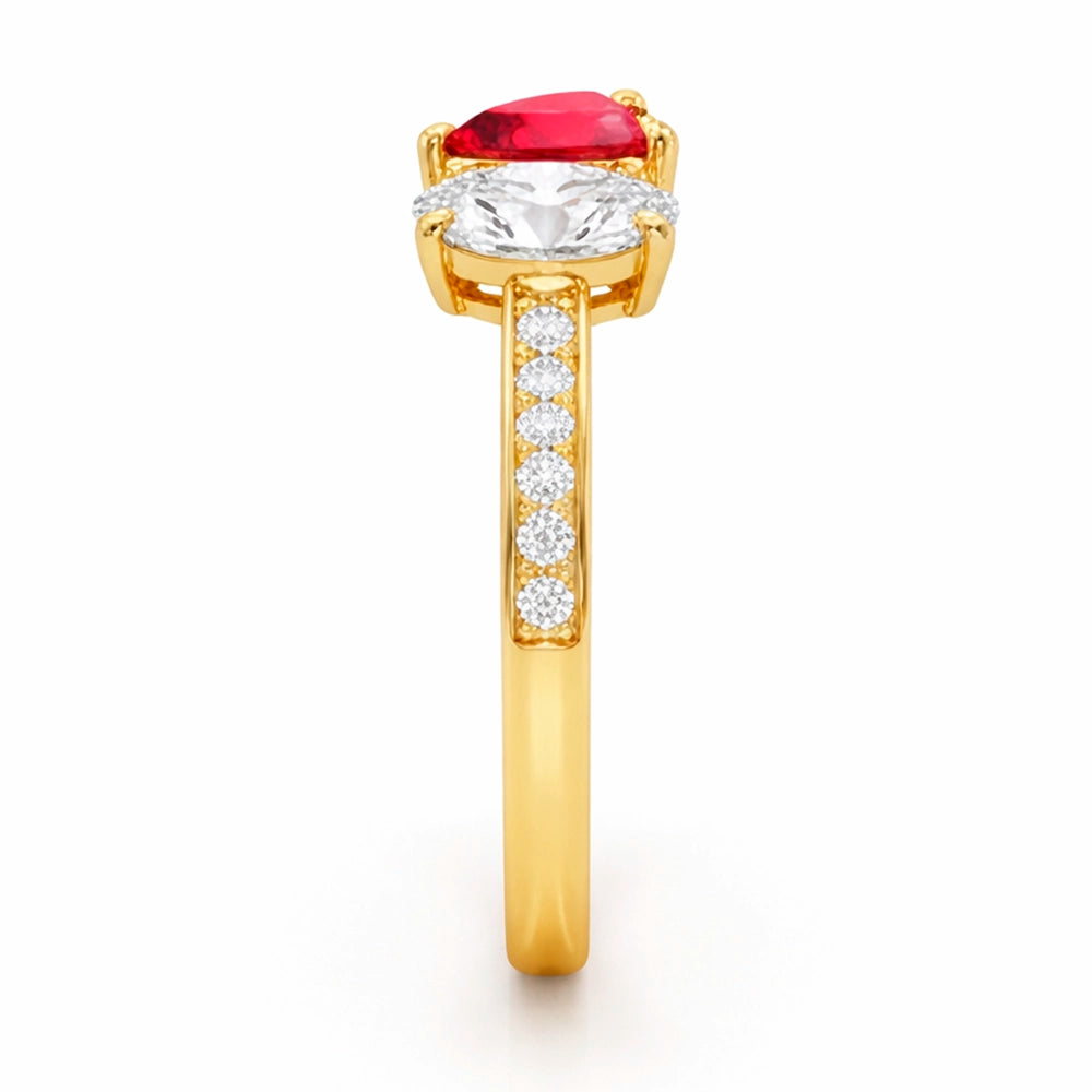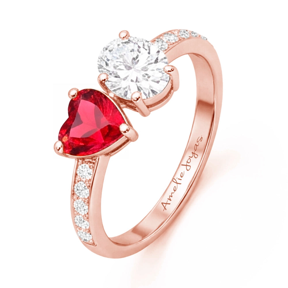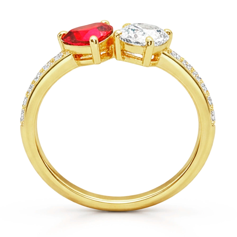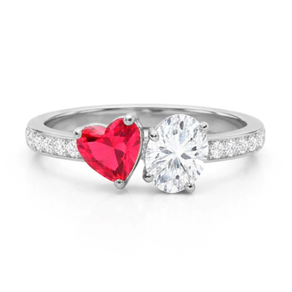Anillo con piedras centrales en forma de corazón y oval, acompañado de piedras laterales en el cuerpo, diseñado para reflejar sofisticación y brillo equilibrado. Una joya única que combina romance, armonía y elegancia atemporal.