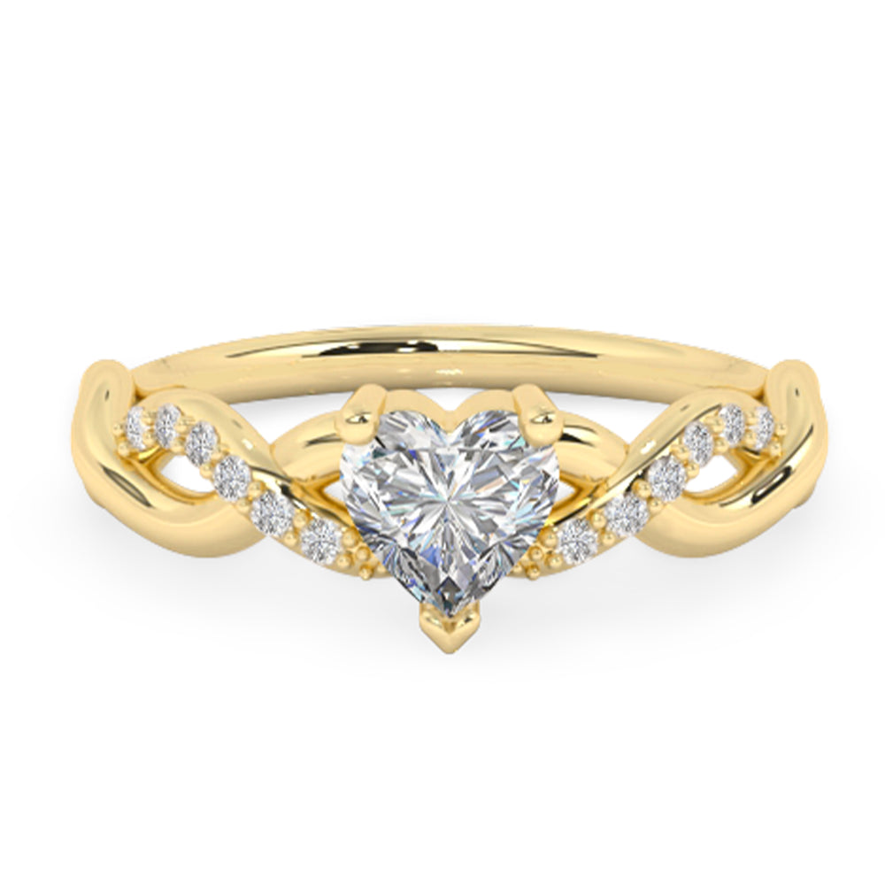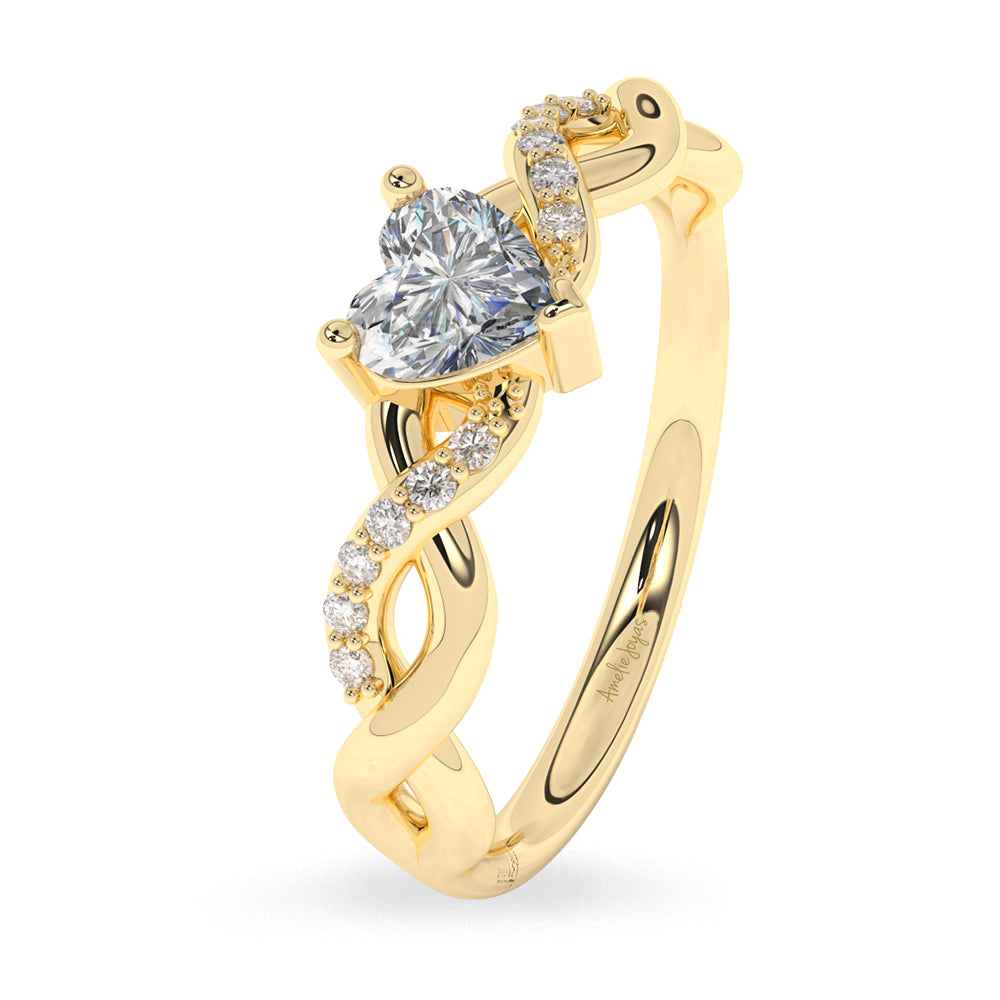 Anillo de Compromiso en Oro, con Zirconia Central en forma de Corazón que simboliza el amor eterno, realzada por delicadas zirconias blancas laterales. Una joya romántica y sofisticada, ideal para sellar la promesa más especial.