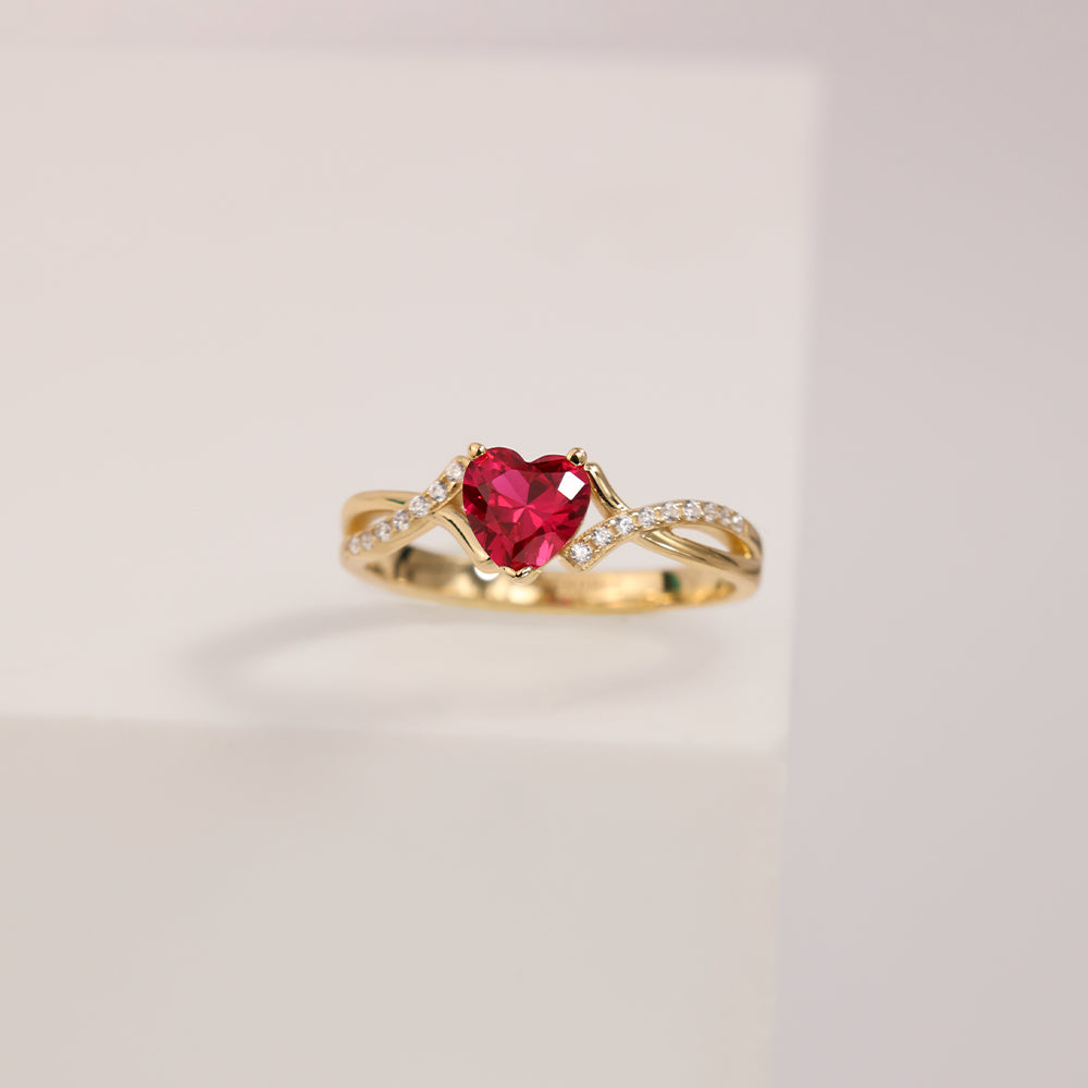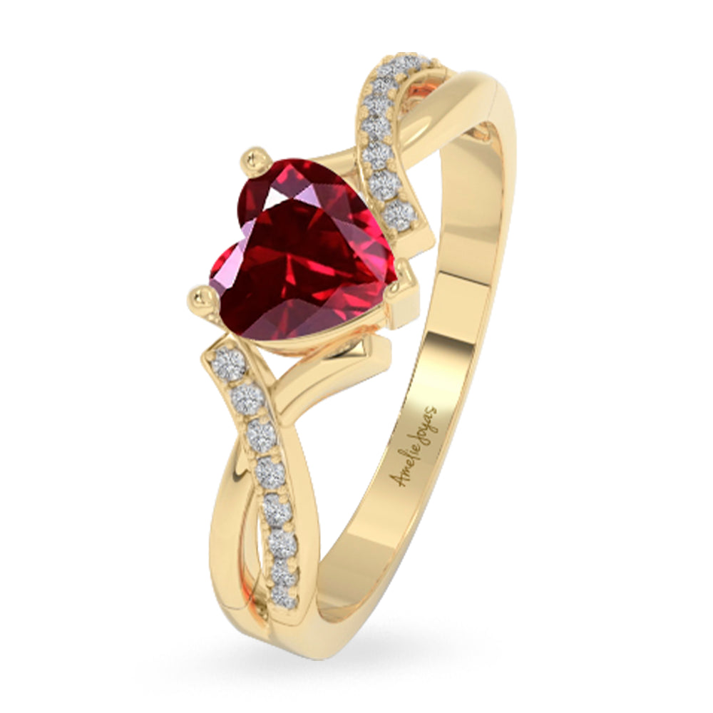 Anillo de dama con zirconia central en forma de corazón, de intenso tono rojo que simboliza pasión y elegancia. Montado en un diseño delicado y femenino, es la pieza perfecta para destacar cualquier ocasión especial.