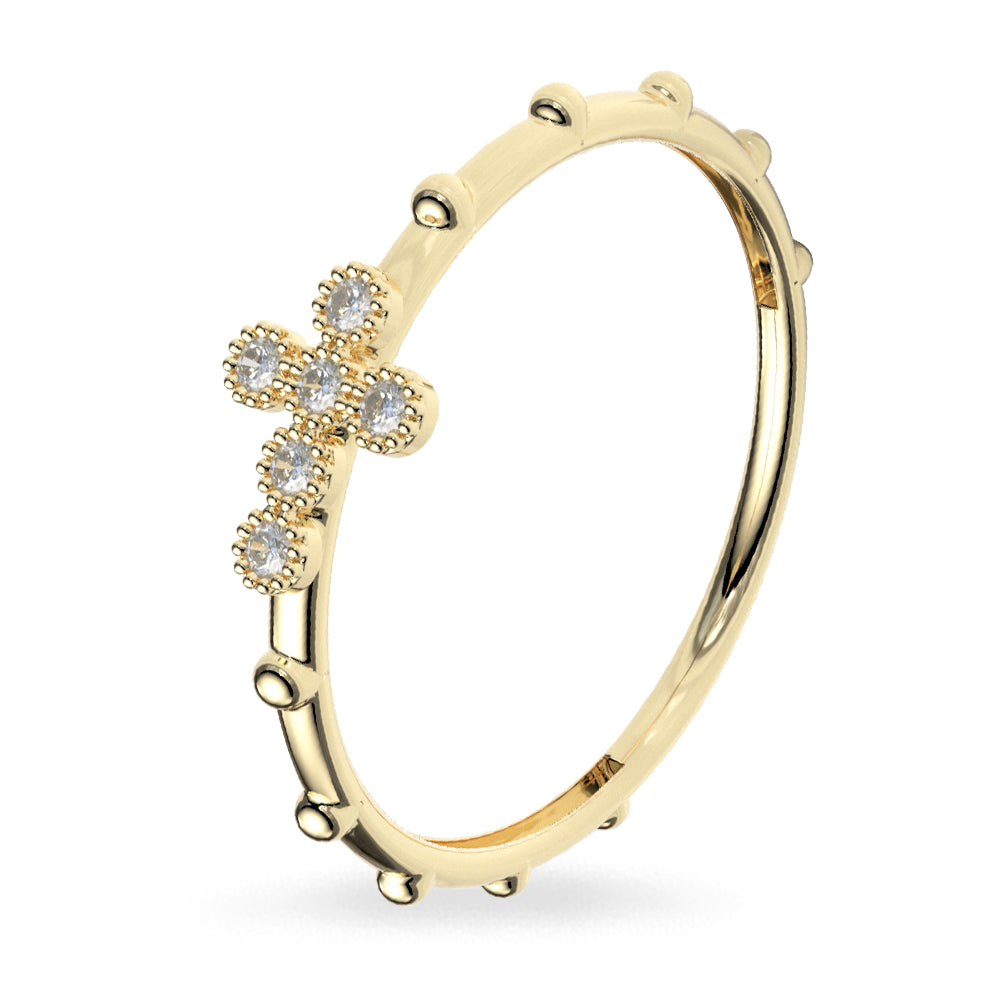 Anillo en Oro con Zirconia que cautiva por su Diseño de Misterio, realzado con una Cruz Central que simboliza fuerza y fe. Una pieza sofisticada, ideal para portar con estilo y significado.”