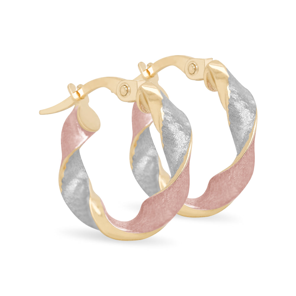 Hermosas Arracadas Torcidas, oro florentino acabado satinado, con un diseño elegante, simple y moderno que garantiza estilo y comodidad al usarlos, con broche estilo italiano.
